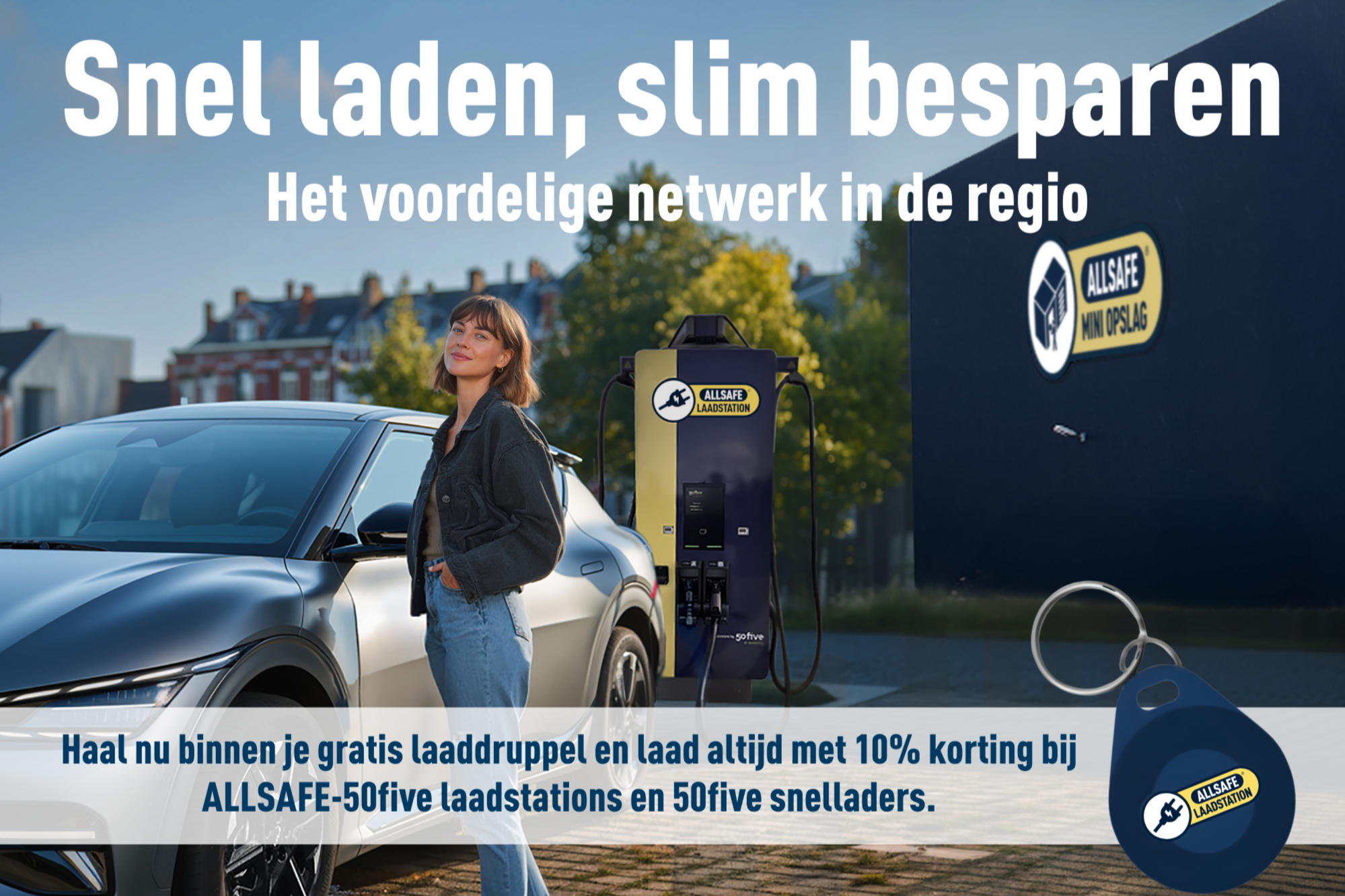Voor ALLSAFE laadstation hebben we een activatie ingezet om meer klanten aan te trekken om zodanig deze nieuwe service te promoten. In 12 vestigingen in Nederland rollen we deze activatie uit. Concept, beeld en teaser headline. Ingezet op de laadstations, site, socials en nieuwsbrief.